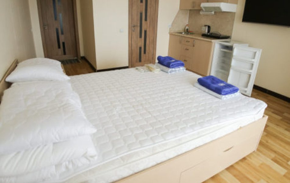 В номере: кровати односпальные /одна двуспальная кровать, кухонная мебель, прикроватные тумбочки, стол, стулья, мини-кухня, кондиционер, мини-холодильник, набор посуды, плита электрическая, телевизор, электрочайник